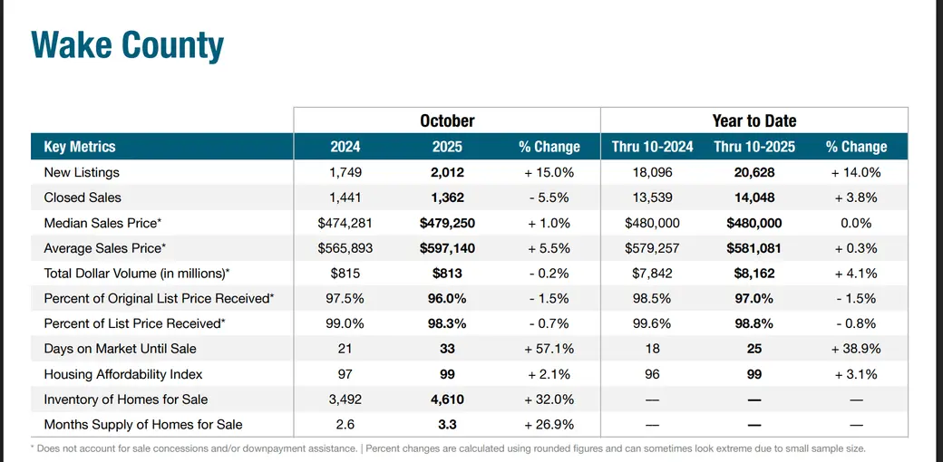 🌟 Wake County: More Inventory, Slight Cooling, Steady Pricing